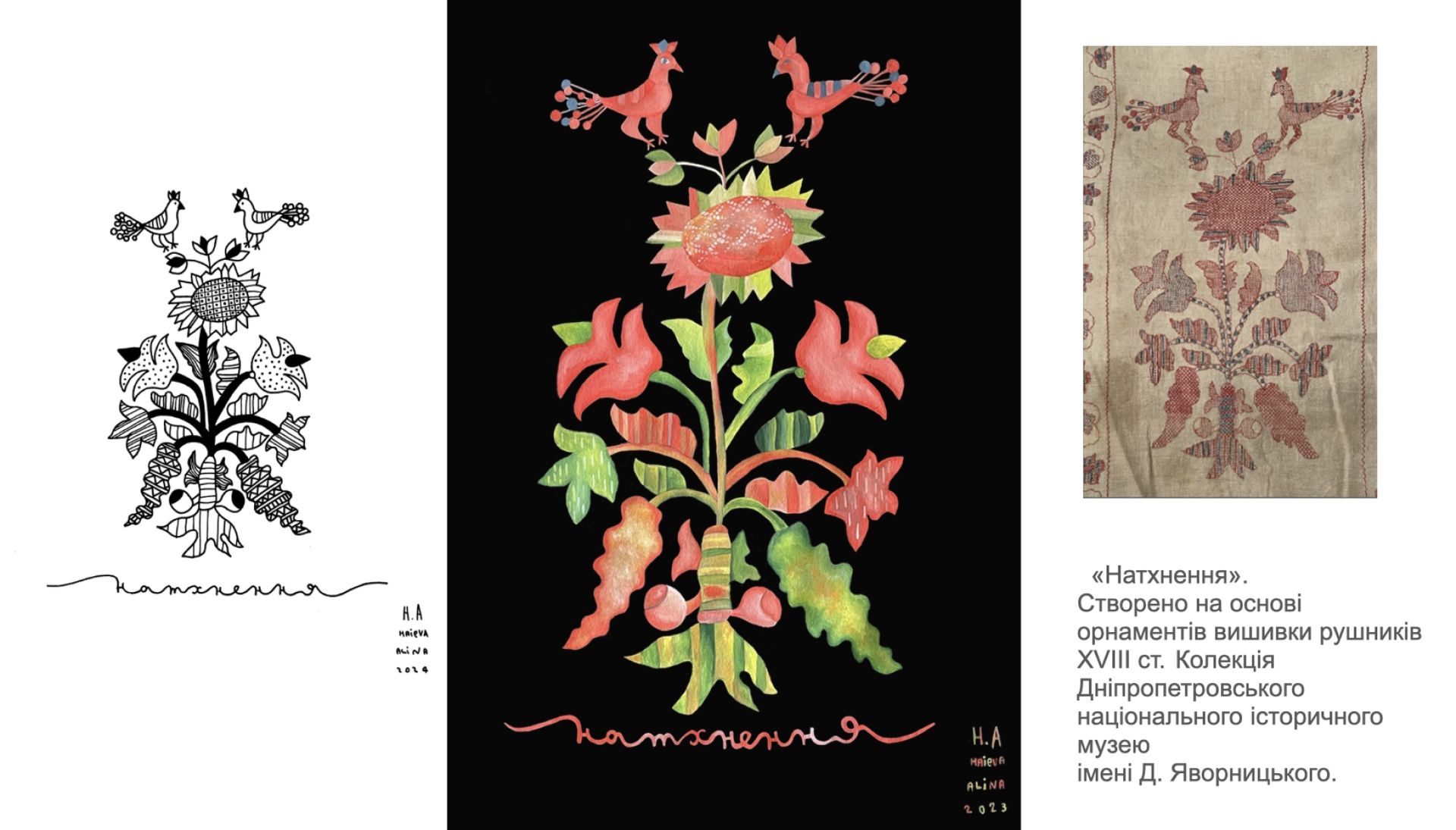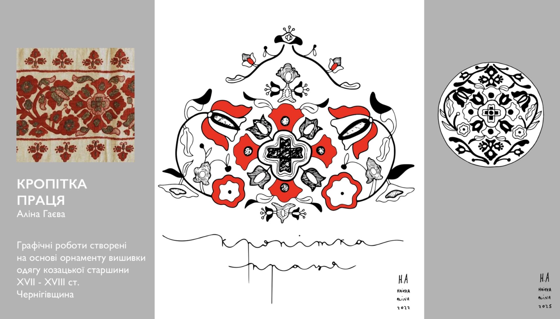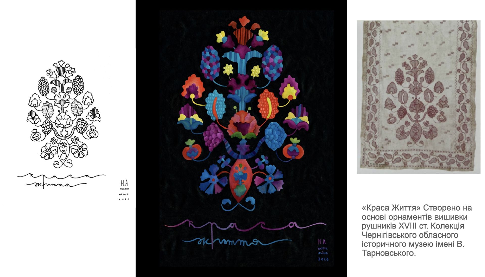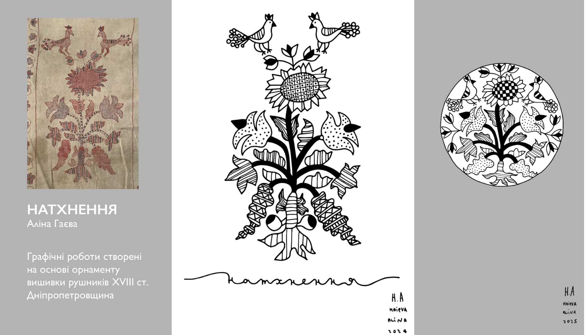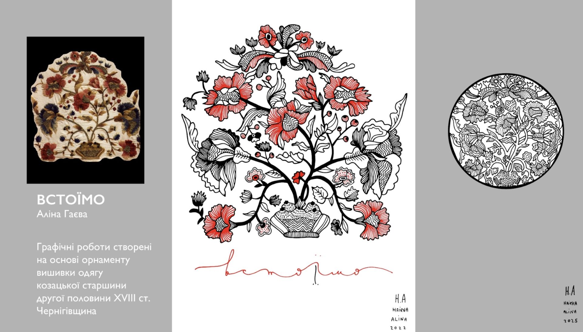 «Сад життя» — це комплексний мистецький проєкт, де давня українська орнаментальна вишивка оживає у сучасних формах: графічних роботах, живописі, текстильних інсталяціях і ювелірних прикрасах. У центрі — архетип Дерева Життя як образ єдності небесного, земного та підземного, зв’язку минулого й майбутнього. Це переосмислення символів, що формували світогляд наших предків, і водночас розмова про нашу ідентичність сьогодні.
