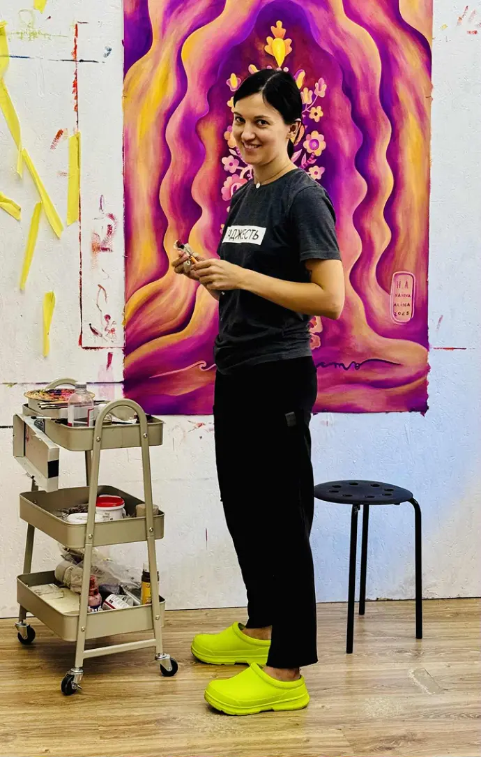 Художниця Аліна Гаєва, засновниця GAEVART, відома символічною візуальною мовою, що перегукується з українськими орнаментами, фресками та оберегами, переплетеними із сучасною естетикою.